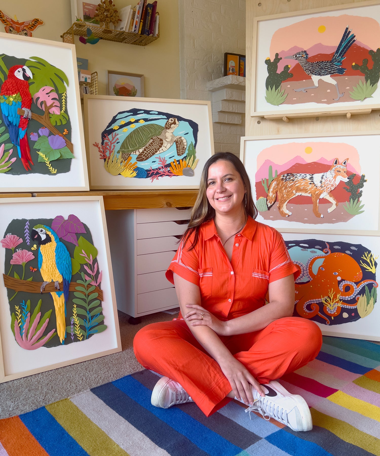 Andrea Cira is a Mexican illustrator and paper artist based in Kansas City. She creates vibrant, dimensional illustrations with cut paper, known for their intricate details. Inspired by her cultural heritage and traditional Mexican crafts, Andrea brings a hands-on approach to her work. Her art showcases a profound appreciation for handmade artistry, blending vibrant colors and intricate details to create unique, captivating pieces.