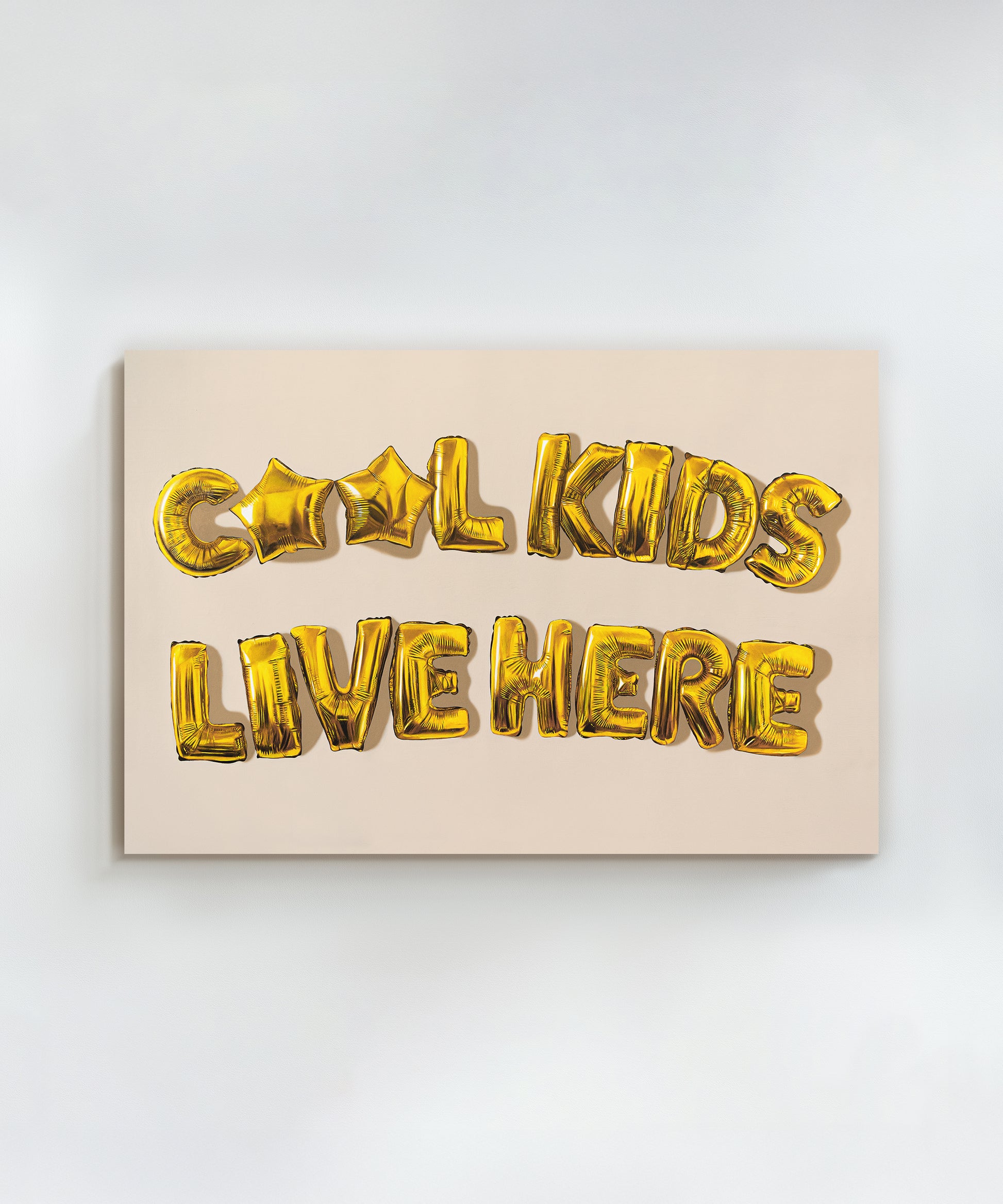 This mylar balloon print makes one thing crystal clear, a very cool kid lives here. Painted in stunning detail by illusionist oil painter Ian Bertolucci, every highlight and shadow is crafted to make those letters practically float off the paper. Fun, bold, and full of personality, this piece brings serious style to any kid’s room. Get your cool kid this cool print they'll love for years to come.