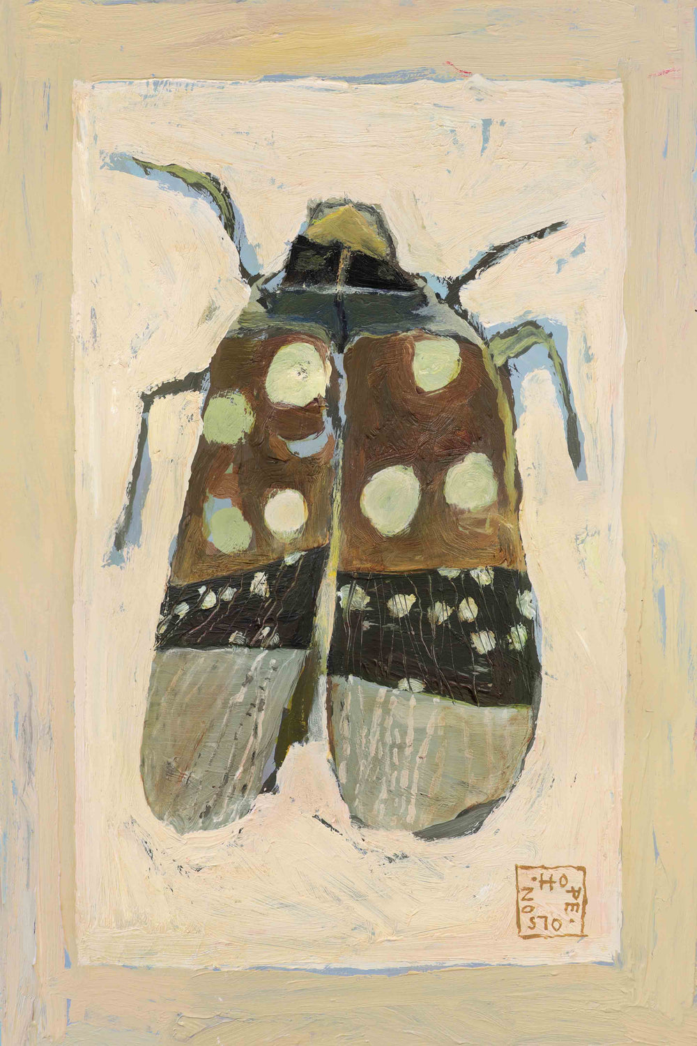 Meet your new bug bestie! Curious Critter by Hope Olson brings woodland charm to life through a lovely palette of oil paints in that signature folk-art style she’s known for. Perfect for a cabin-inspired nursery or nature-loving little one, this beautiful bug adds a touch of sophistication and curiosity to any wall. Pair it with Olson’s Beetle On Blue for a dynamic duo of forest friends.