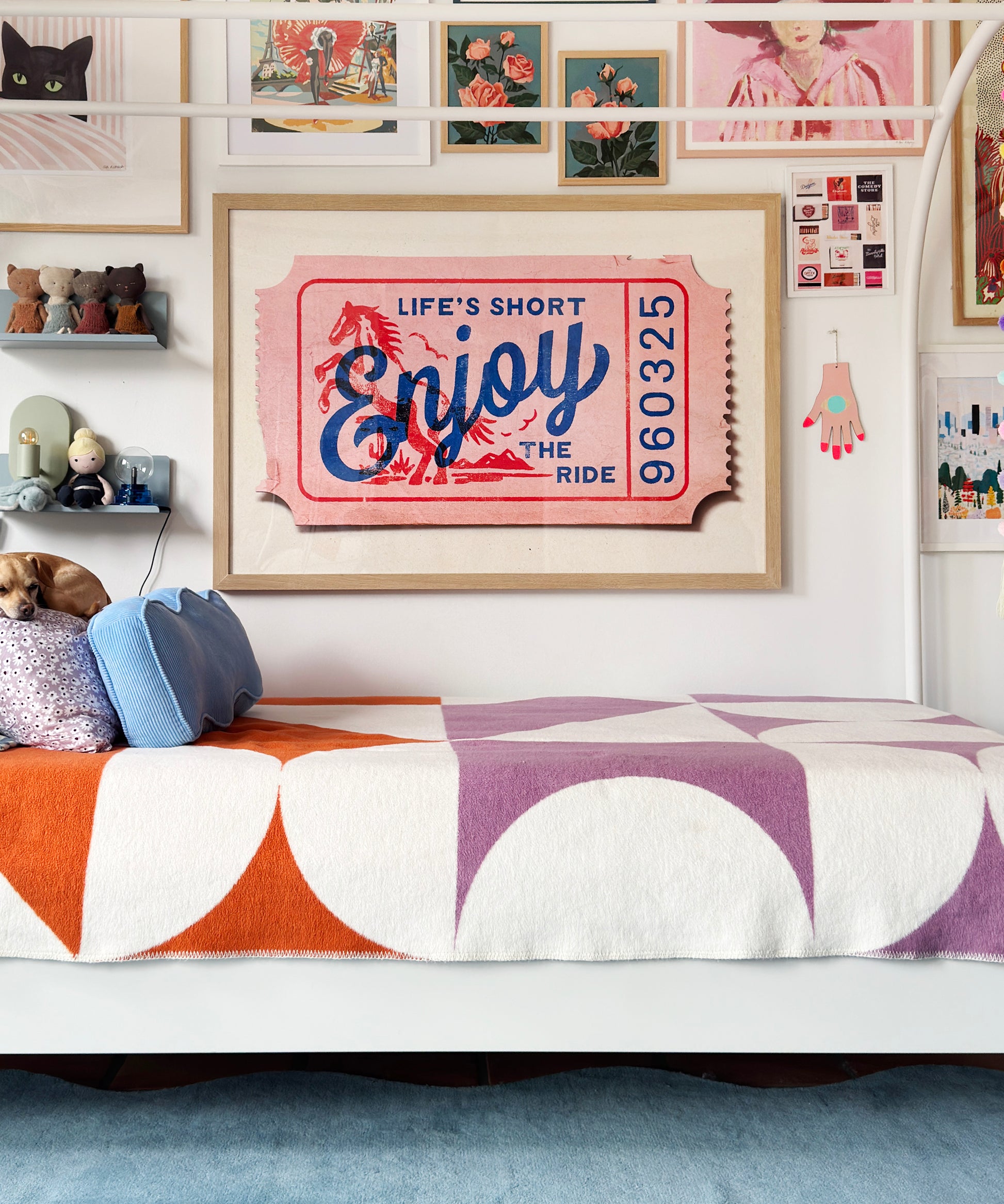 Step right up and get your ticket! This retro-inspired typography piece brings carnival charm to any nursery or playroom with its soft pink backdrop and bold blue lettering. A playful reminder for your little dreamer (and yourself) that every day is a ride worth celebrating.