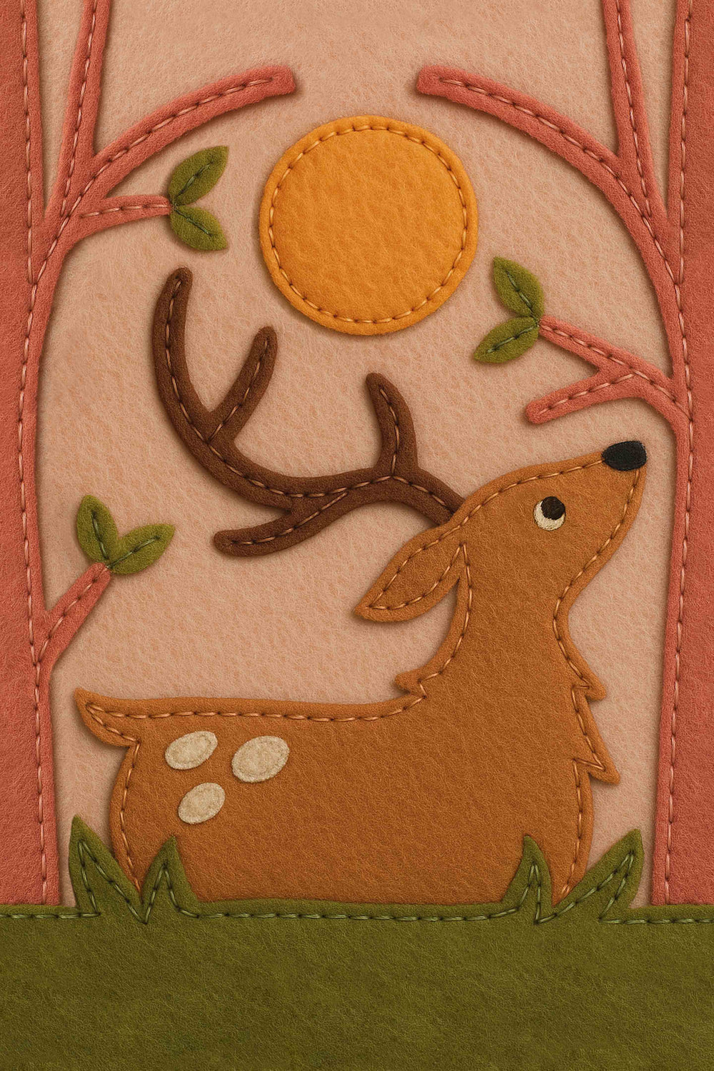 Embark on an adventure into a felt forest filled with furry woodland friends. This lovely piece featuring the deer of the forest perfectly framed by trees under a full sun. Designed in a unique and detailed felt cutout style, this piece will bring charm and character your little one's space! Whether on its own, or paired with any of the other felt forest companions, this print will make the perfect addition to your woods or cabin-themed room.