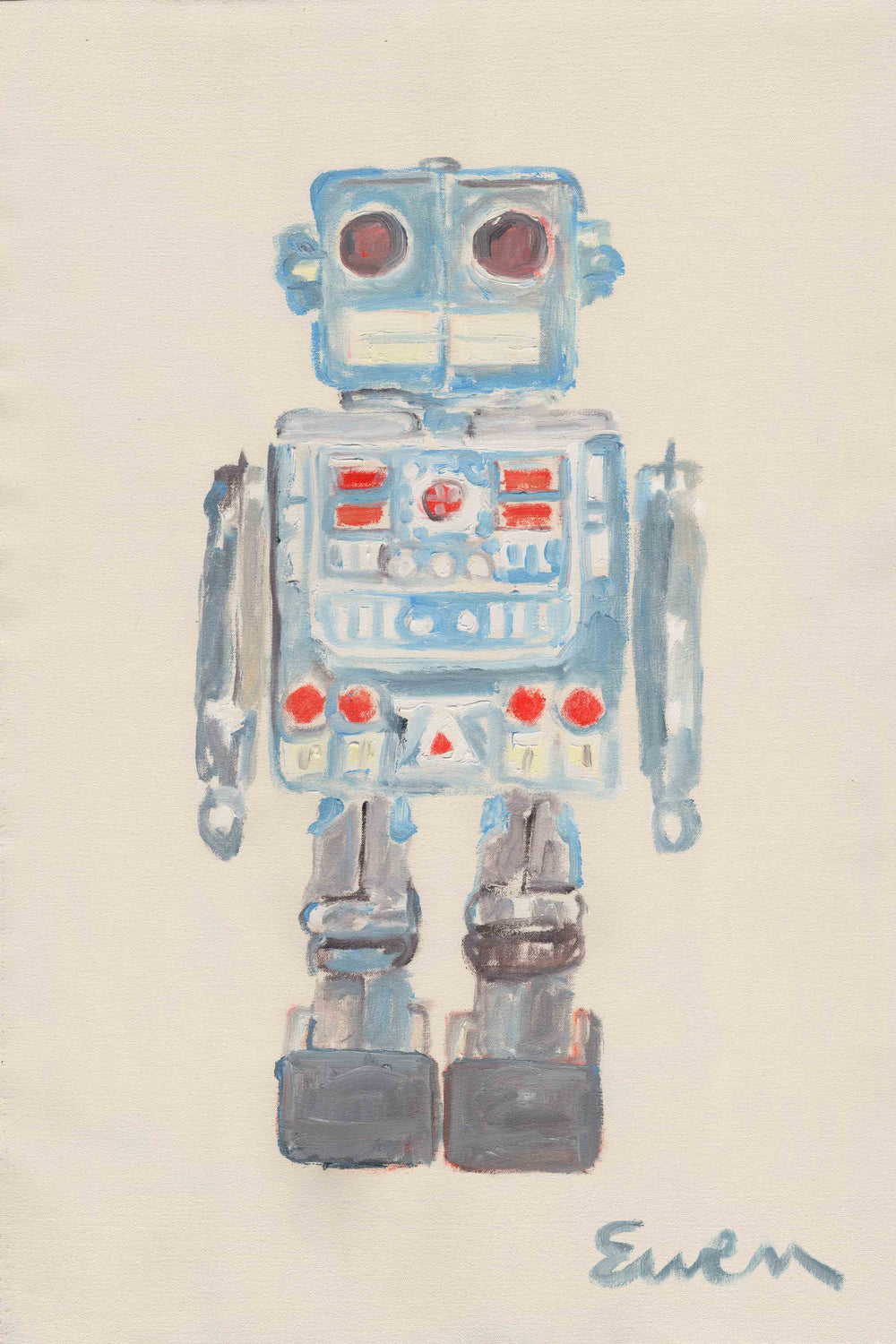 Say hello to Little Robot - a pint-sized powerhouse of pastel charm with enough personality to power your whole nursery. Painted in Anne-Louise Ewen’s signature loose oil-paint style, Little Robot brings a minimalistic charm with tones of soft blues and cherry reds on a raw canvas background. Expressive, playful, and just the right kind of quirky, this adorable bag of bolts is ready to shine on your walls!