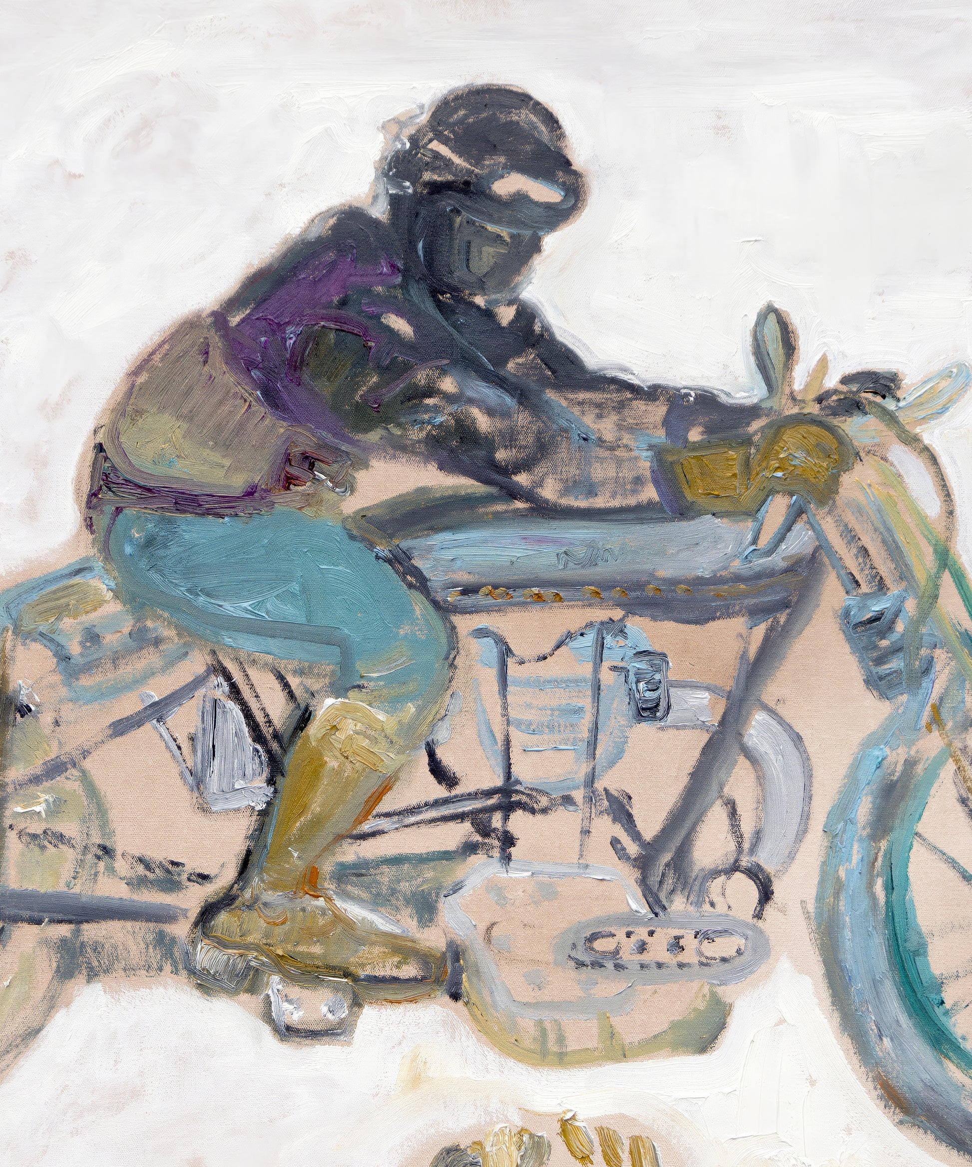 Hear the roar of the engine with "Motorbike" by Anne-Louise Ewen! The soothing colors and energetic strokes bring this piece to life, perfectly capturing the thrill of the open road. Originally painted with oils on canvas, this print reflects Ewen’s signature approach—sophisticated yet playful—even incorporating her palette directly into the piece itself. Looking for that statement piece of artwork for your engine-obsessed little one? Look no further!