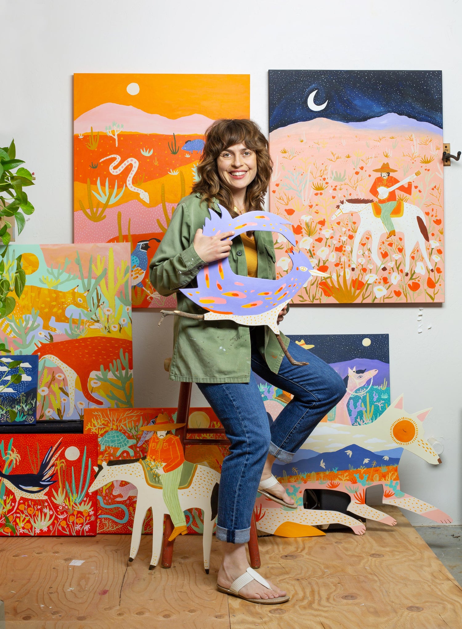 The incredibly talented Melissa Lakey is a contemporary artist and illustrator based in Joshua Tree, California. Her colorful figurative and landscape-based works draw inspiration from the beautiful hues of the desert that surround her. Color is a main theme in her work, as she’s able to capture the world through a playful and vivid lens whether it be in the desert, on the coast, or anywhere in-between!