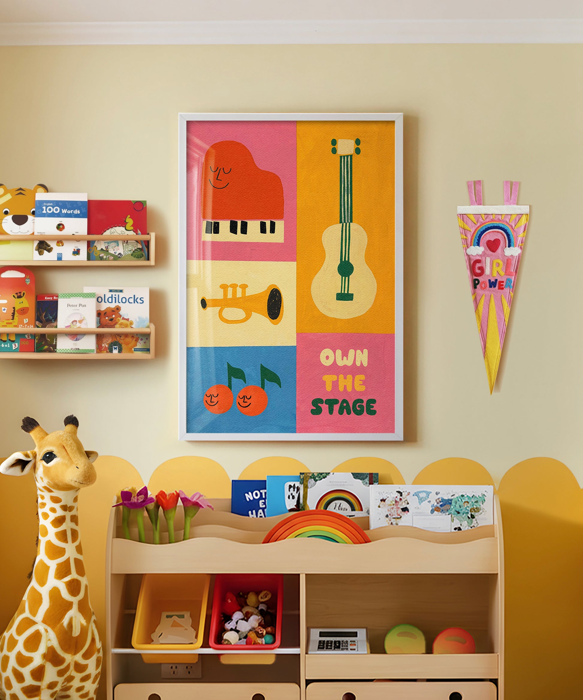 Does your little one have the gift of musical talent? This joyful print is a perfect reminder to always be confident enough to own the stage! Created in collaboration with illustrator Priscilla Moreno, this jazzy piece features a lively mix of instruments, including a cheerful red piano. A delightful pick for your budding Mozart, it’s sure to inspire big dreams and bold performances!