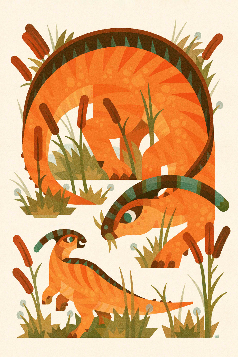 Part of our Little Dinos Collection, the details in this piece will amaze. Each design in this series was created by layering shapes and fine textures to mimic the risograph printing process, a digital screen-printing technique that gives every piece an authentic, hand-made feel.