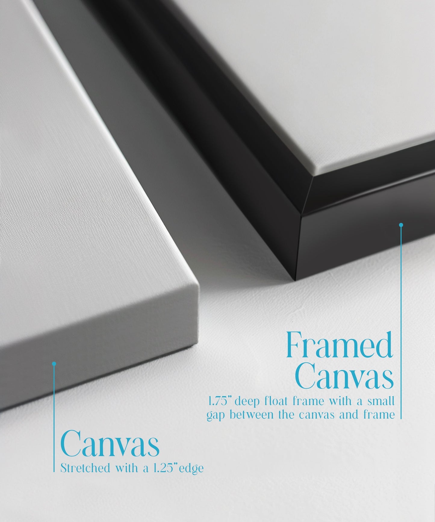 Our canvas prints comes on a high-quality semi-gloss canvas stretched onto a wooden subframe with a 1.25" depth. The canvas is sturdy, lightweight, and easy to hang!