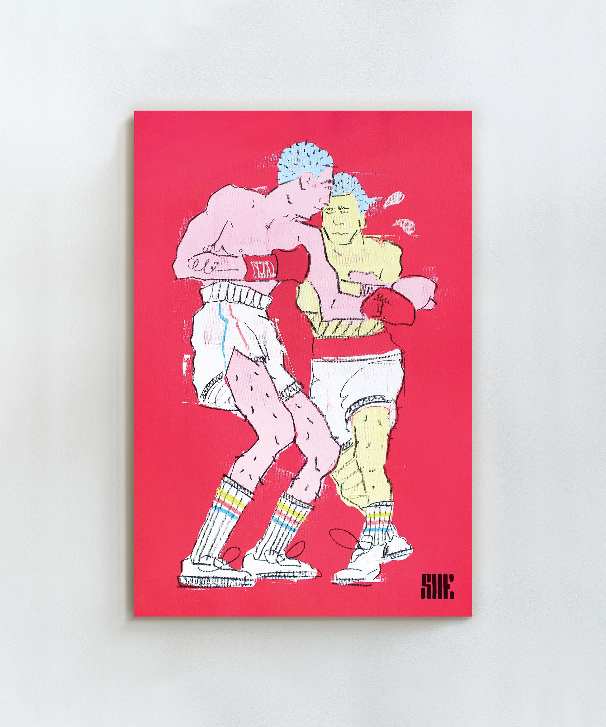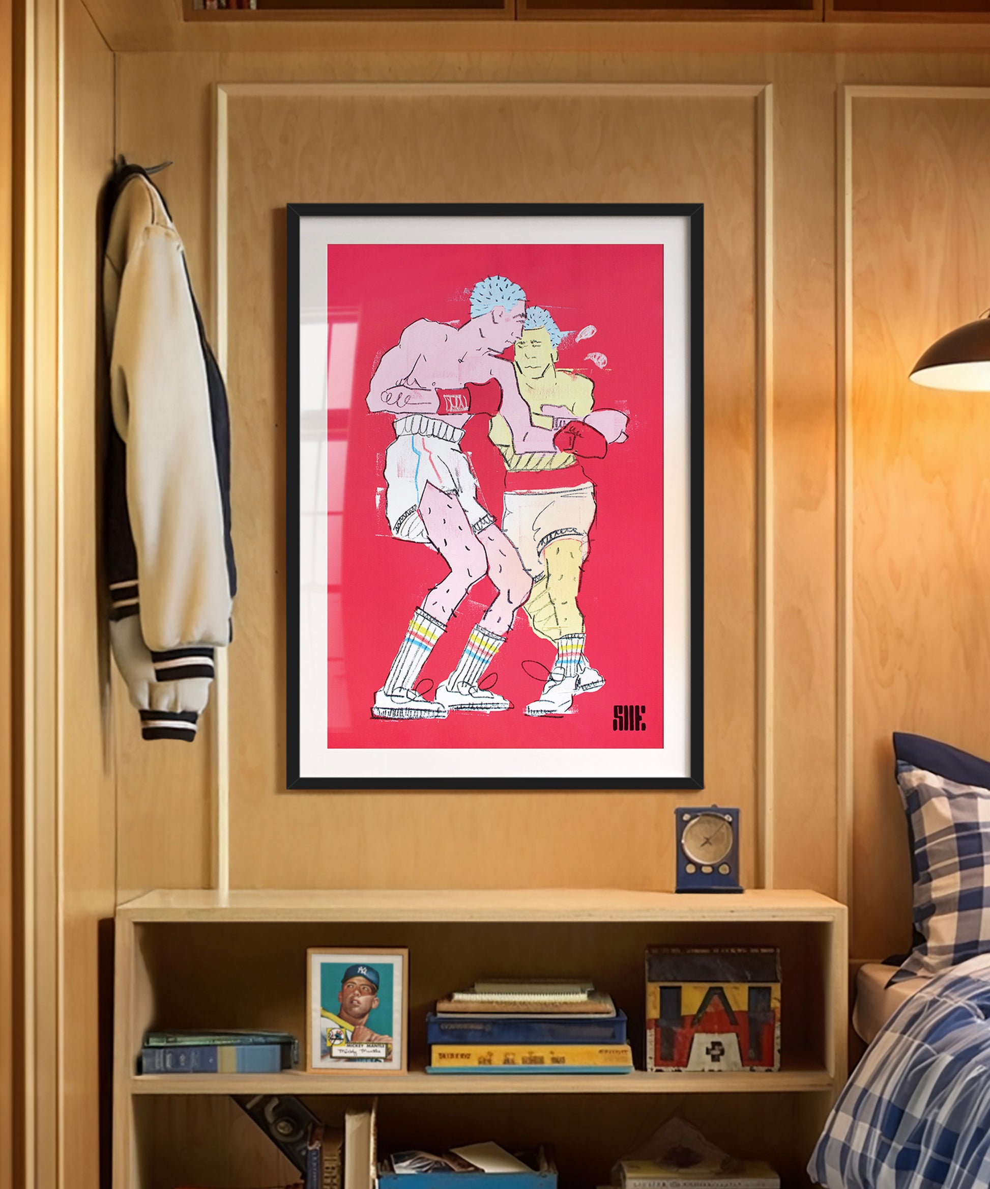 Step into the ring with Right Hook, a vibrant pop art piece by Tyler Shelton. Featuring the bold techniques and vivid colors that give Shelton's work its distinctive look, this piece captures the energy and movement of two warriors locked in a heated battle. Hang it as a standalone statement or pair it with Shelton's other piece, Sting Like a Bee, to create a knockout combination that will be a cherished addition to your little sports enthusiast’s space for years to come.