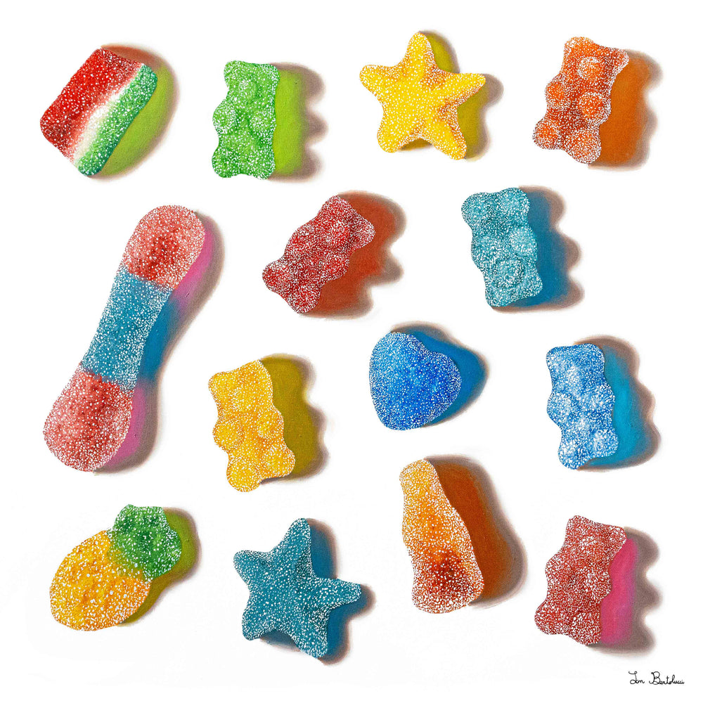 Italian oil painter Ian Bertolucci will make your lips pucker with this colorful piece, "Sour Candies." Originally created with oil paints on canvas, Bertolucci masterfully captures superb realism—from the sugary sour coating to the soft, diffuse shadows cast by the candies. If you love a touch of sour, this piece is just for you!