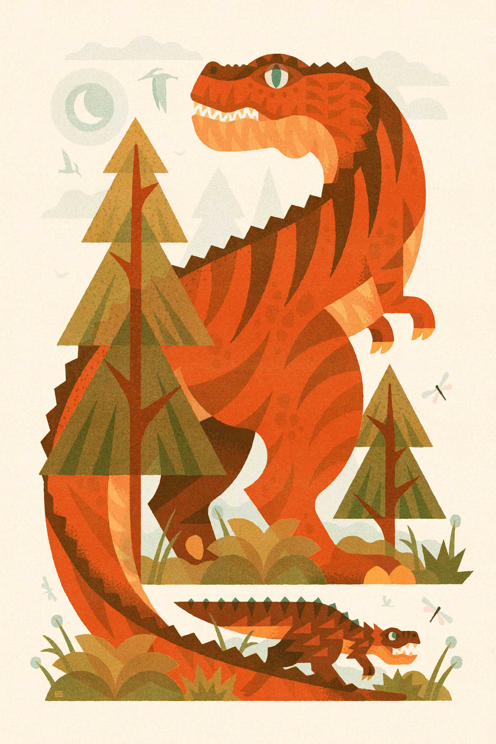 Part of our Little Dinos Collection, the details in this piece will amaze. Each design in this series was created by layering shapes and fine textures to mimic the risograph printing process, a digital screen-printing technique that gives every piece an authentic, hand-made feel.